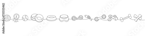 Dog playing with a frisbee, linear icon. Line with editable stroke