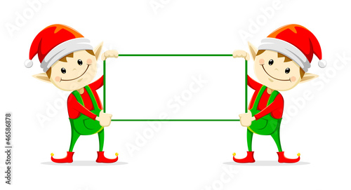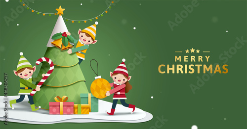 Winter holidays banner with elves and presents Vector templates with Santa Claus little helpers fun characters Cute kids design for print, party invitation, flyer, banner. Merry Christmas 2025 cover
