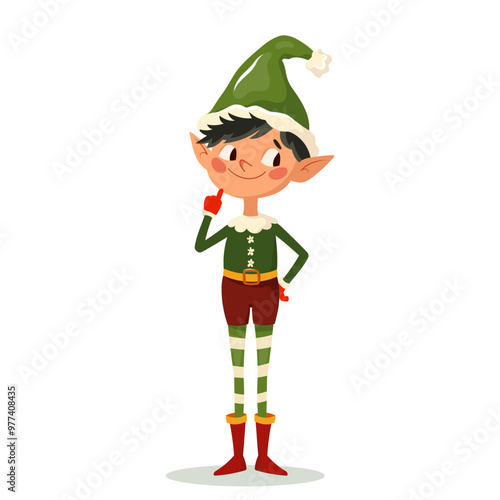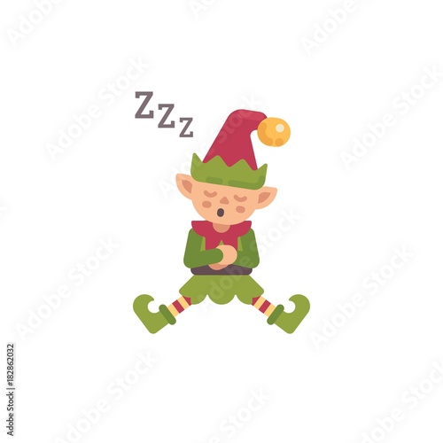 Vector set of flat cute cartoon Christmas elves. Isolated colorful Santa elf collection. Happy New Year, Merry Christmas illustration design elements for print, web, applications, postcard, banner.