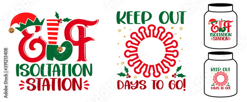 Elf isolation station, keep out ... days to go - phrase for Christmas baby / kid clothes or ugly sweaters. Hand drawn lettering for Xmas greetings cards, invitations. Good for elf mason jar label.