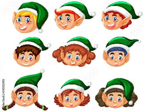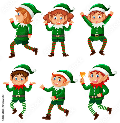 Collection of Christmas Elves isolate. Little santa helper. Young lovely cute kids in Christmas Elf costume.