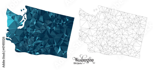 Low Poly Map of Washington State (USA). Polygonal Shape Vector Illustration.