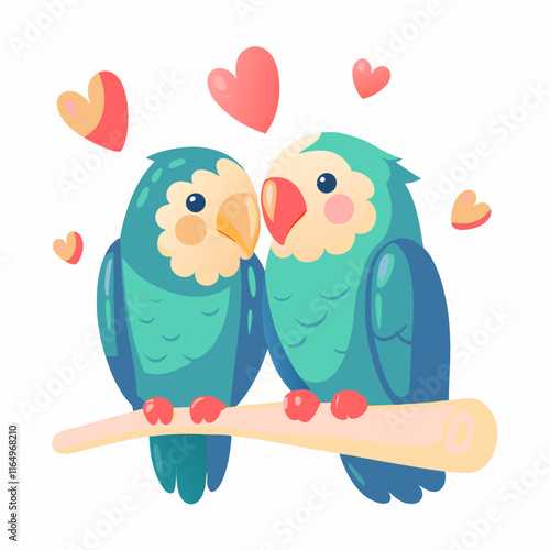 Valentine's day celebration with lovebirds digital illustration whimsical bright colors romantic affection