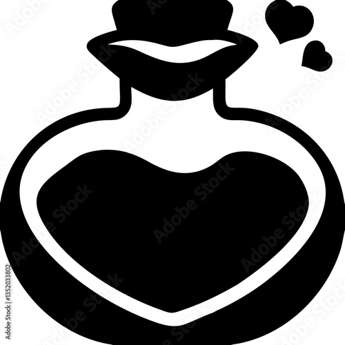 Love Potion Bottle Silhouette with Hearts Romantic Magic Vector Design