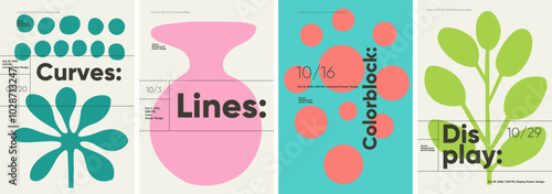 Abstract posters designs. Modern wall art with organic irregular geometric shapes. Contemporary artworks with creative elements pattern. Interior decorations set. Colored flat vector illustrations