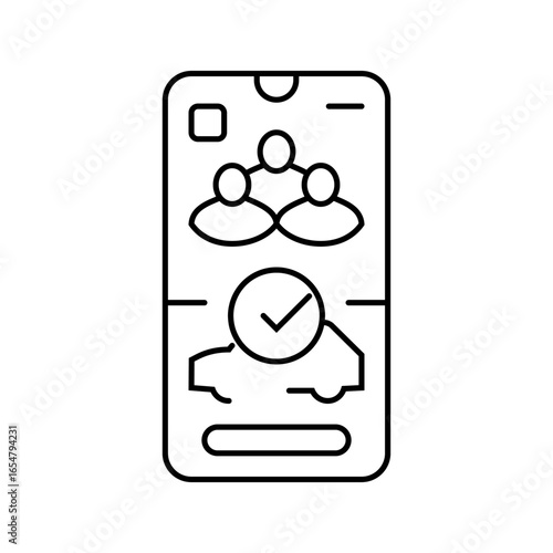 Car sharing and rent service. Online ordering for smartphone. Mobile app ordering automobile vehicle with location mark rent car sharing. Flat vector illustration.