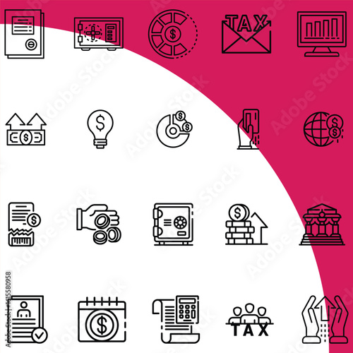 Finance industry line icons collection. Decisions, Governance, Leadership, Strategy, Accountability, Collaboration, Power vector and linear illustration. Direction,Management,Vision outline signs set