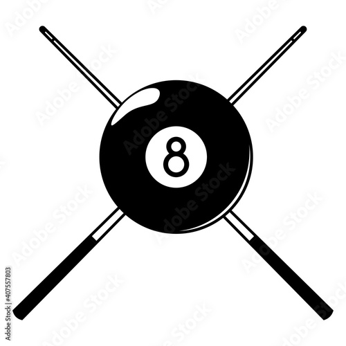 Billiard club logo template. Billiard logo. crossed billiard cues with eight ball isolated on white background. Vector emblem