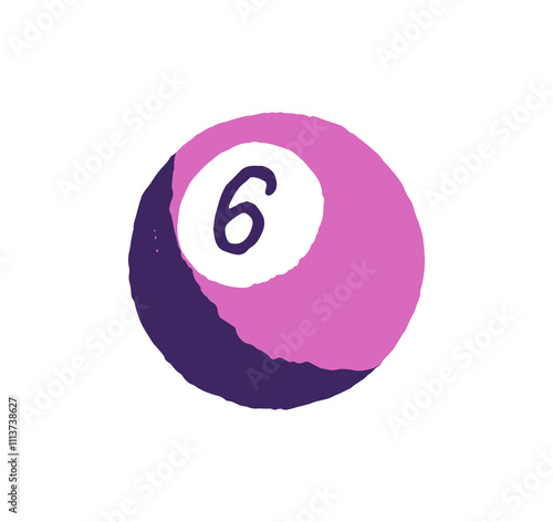 Snooker, pool billiards icon. Ball with number six for cue sport. Athletic inventory, equipment with round shape to play game. Pink sphere with 6. Flat isolated vector illustration on white background