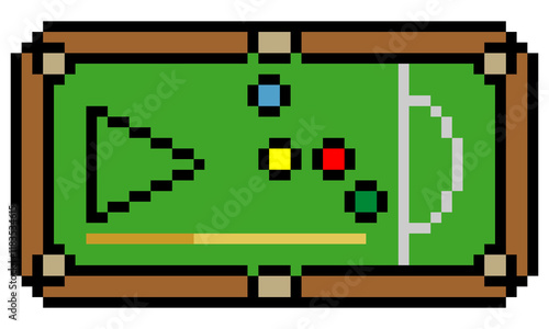 Stickman play billiards on billiard table or snooker table with cues and balls. Cartoon pool table with cue and ball. Game tools.