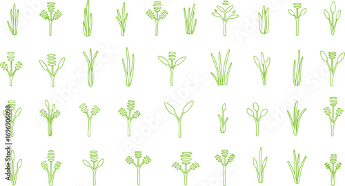 Collection of delicate hand-drawn floral elements botanical sketches for design projects silhouette