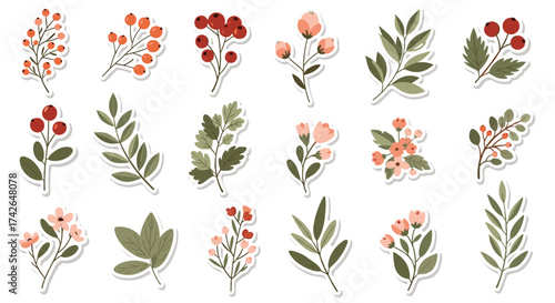 Collection of diverse botanical elements and delicate floral sprigs in a modern artistic style