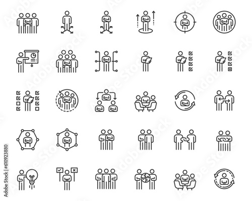 people icons business process, human resource management,  meeting work group team , icon line vector design elements pictograms and infographics