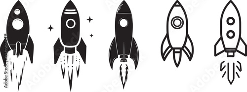 Rocket Launch Icon Pack – Clean Outline, Line Art, and Vector Illustrations for Space Missions, Satellite Launches, and Aerospace Projects