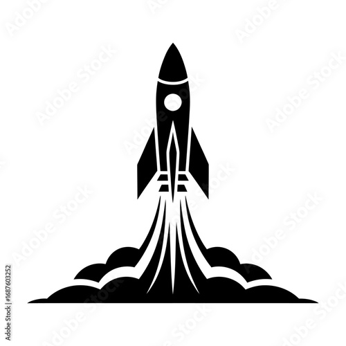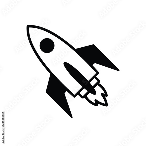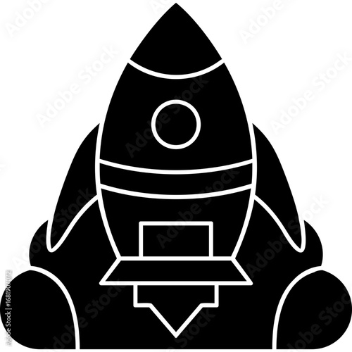 Black rocket icon depicting space travel and innovation