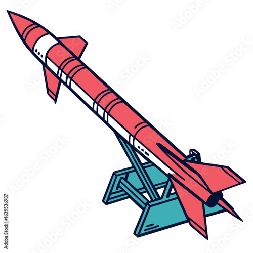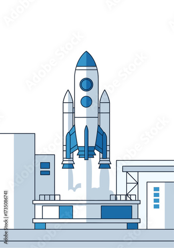 Minimalist Rocket Launching From Platform Vector Illustration