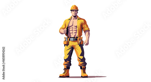 Masculine mature man with a muscular body. Vector Illustration of a macho masculine character.