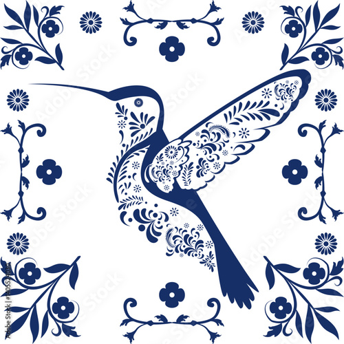 hummingbirdmexican talavera poblana mosaic illustration in vector format