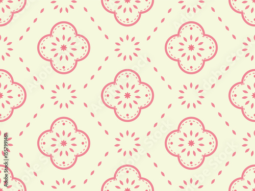 Seamless floral pattern with pink flowers and hearts in decorative vintage style, Seamless pattern in tribal, folk and mexican styles. Aztec geometric ornament print. Design for carpets, wallpaper
