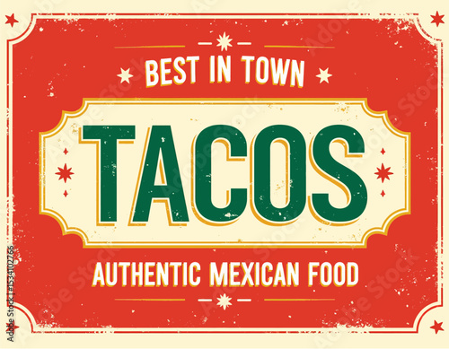 Vintage Tacos Sign: Best in Town Mexican Food, Festive Design