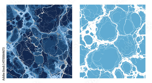 Abstract swirls and geometric patterns in blue purple and green hues on