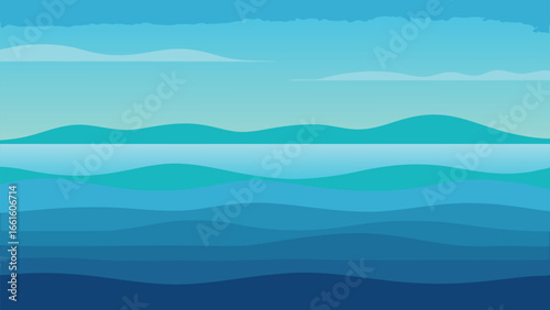 Serene open ocean landscape vector illustration with gentle waves and soft sky hues