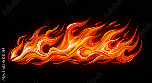 Dynamic stylized flames burning with vibrant orange and yellow hues against a dark backdrop