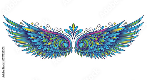 Vibrant abstract floral design with blue green and yellow hues on white background
