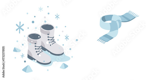 Winter boots and scarf with snowflakes: cozy seasonal essentials in pastel hues