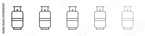Gas tank icon set. Propane cylinder line symbol. Fuel canister pictogram. Petrol tank illustration. LPG or compressed methane outline icon isolated.