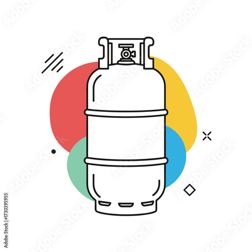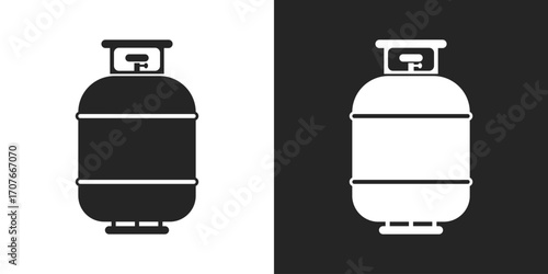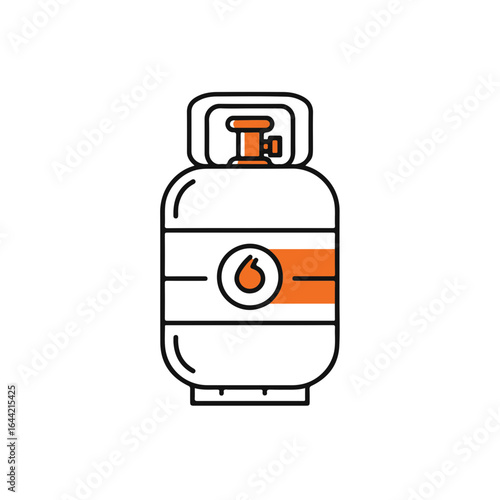 Minimalist flat gas cylinder icon in outline style, vector EPS 10 format. Represents propane or LPG tank used for household, industrial, camping purposes. Ideal for safety signage, energy illustration