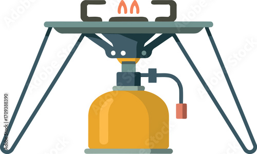 Camping gas burner, Forest travel. Flat vector clipart, illustration with isolated background.