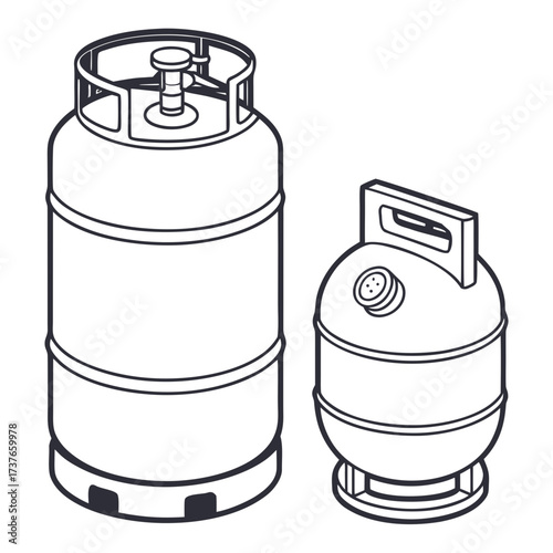 Vector illustration of gas cylinders in black and white perfect for industrial designs