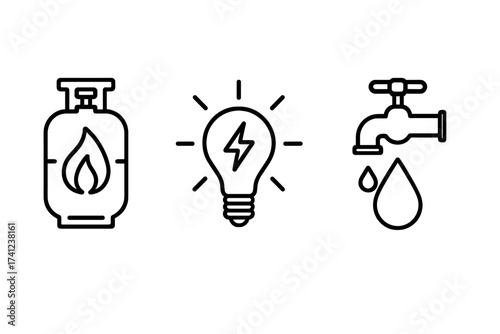 Natural Gas Line Icons, Energy Production, Gas Pipeline, Fuel Industry, LPG, Propane, Extraction, Refinery, Gas Storage, Sustainable Energy, Power Supply