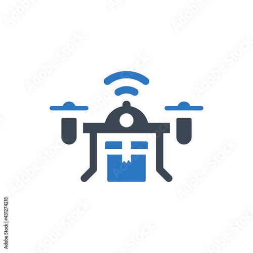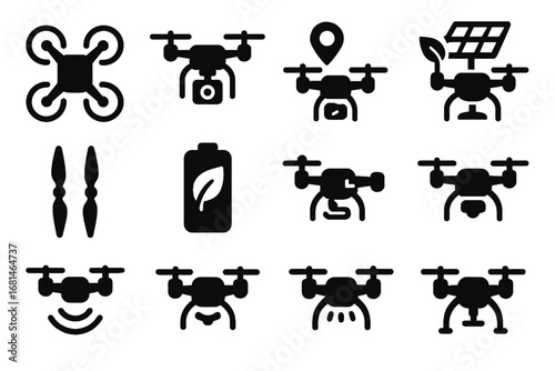 Collection of modern drone technology icons representing delivery surveillance and aerial photography concepts