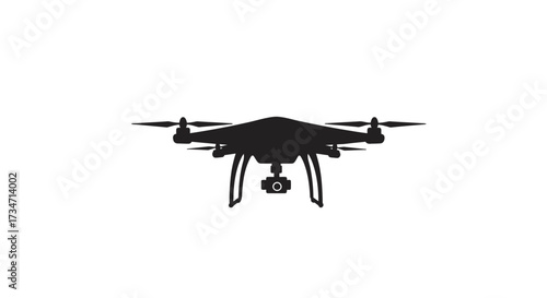 Modern Drone with Camera Vector Illustration Black and White Silhouette for Aerial Photography and Technology Concepts
