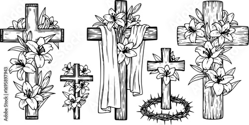 Christian cross. collection of signs of the cross. Easter, symbol of Christianity hand drawn vector illustration sketch