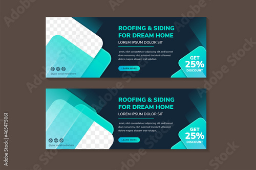 set of horizontal Banner for roofing and siding for dream home. creative concept for advertising. template for posting photos and text. Modern dark blue  background with bright blue elements.