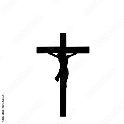 Jesus on the cross, circular design with radiant light, religious symbol of faith and salvation silhouette vector illustration