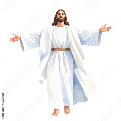Jesus Christ with Open Arms and Halo Vector Illustration: Religious Hope and Devotion