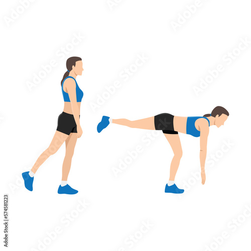 Woman doing one legged or single leg deadlift exercise. Flat vector illustration isolated on white background