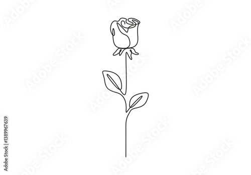 Tulip one line drawing.Abstract flower continuous line. Minimalist contour drawing of tulip. Continuous line drawing of flower tulip.Hand drawn sketch of flower with leaves.