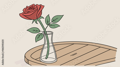 Vector isolated one single rose flower on a stem with leaves colorless black and white contour line easy drawing