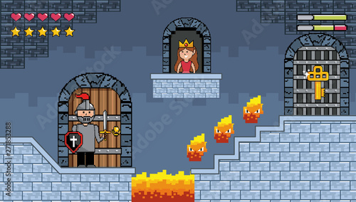 Medieval fair vector illustration. Cartoon flat middle ages or fairy tale fair market with lady and sir characters standing in costumes of feudal lords, jester dancing, priest drinking beer background