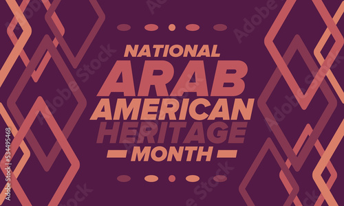 Native Arab American Heritage Month in April. Arab American culture. Celebrate annual in United States. Tradition arabian pattern. Poster, card, banner and background. Vector ornament, illustration