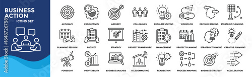 Business Action icon collection set. Containing design Productivity, Accuracy, Archery, Colleagues, Problem Solving