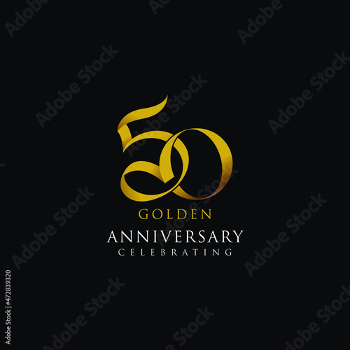 50th, 50 Years Anniversary Logo, Golden Color, Vector Template Design element for birthday, invitation, wedding, jubilee and greeting card illustration.