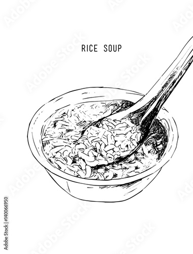 prawn soup with white coconut milkor porridge traditional chinese asian food drawing illustration