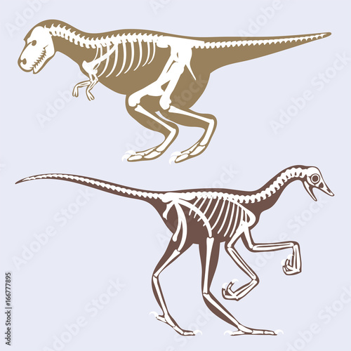 Graphical illustration, set of dinosaur skeletons isolated on white background,vector illustration