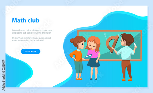 Science school club landing page vector template. Kids robotics education website interface idea with flat illustrations. Digital science learning homepage layout. Web banner, webpage cartoon concept